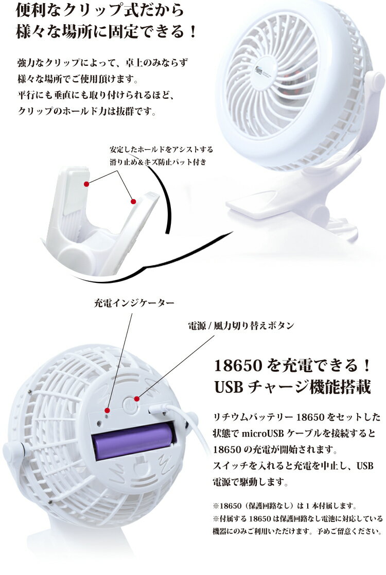 ミニ扇風機 超強力 卓上扇風機 クリップ タイプ卓上 & クリップUSB と リチウム電池式 18650 の2WAY電源!風量3段階付き卓上扇風機 デスクファン デスククーラー EJ-FUJINFAN-Smash宅配便送料無料