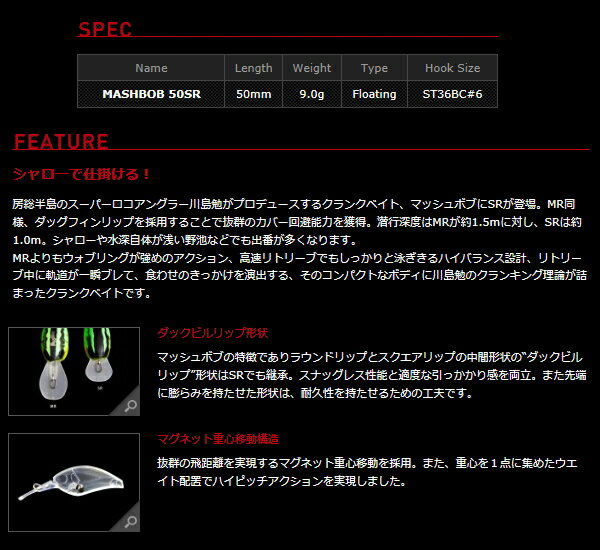 房総半島のスーパーロコアングラー川島勉がプロデュースするクランクベイト、マッシュボブにSRが登場。